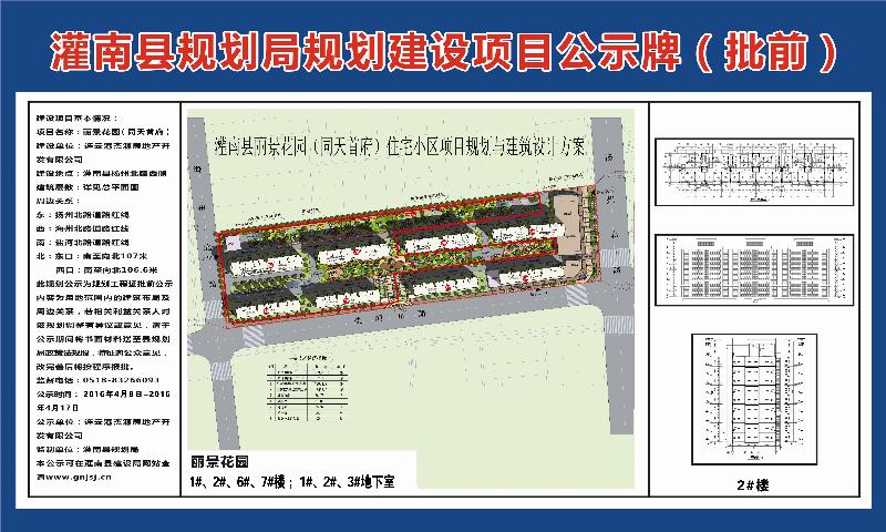 丽景花园(同天首府)1#、2#、6#、7#、1-3#地下室工程证批前公示(原灌南县规划局发布)