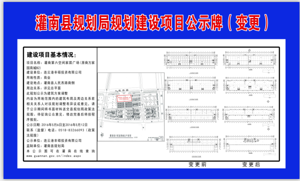 灌南第六空间家居广场建筑方案调整公示牌(原灌南县规划局发布)