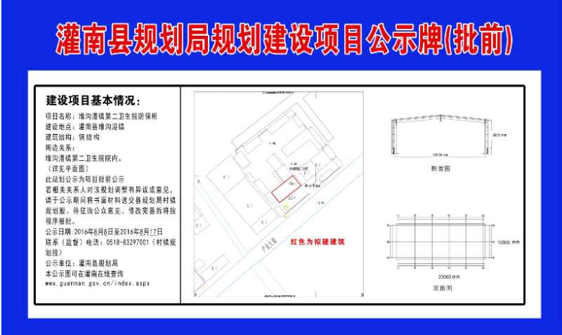 堆沟港镇第二卫生院防保所建设项目批前公示(原灌南县规划局发布)