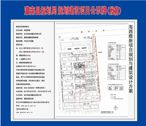 海西雅居建设项目批前公示图(原灌南县规划局发布)