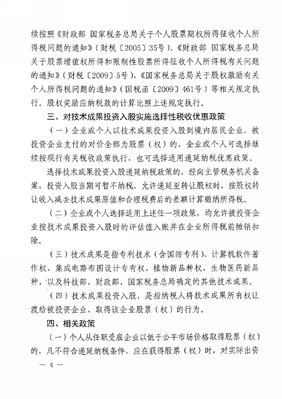财政部 国家税务局关于完善股权激励和技术入股有关所得税政策的通知