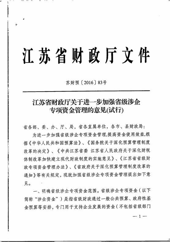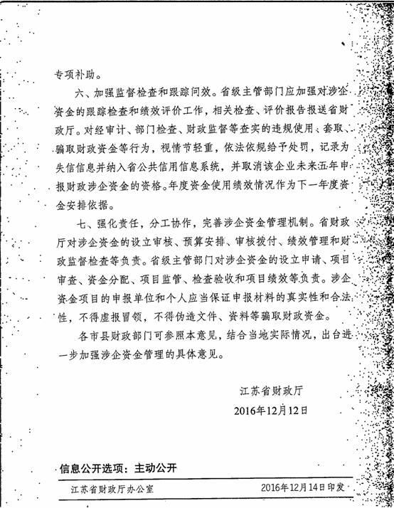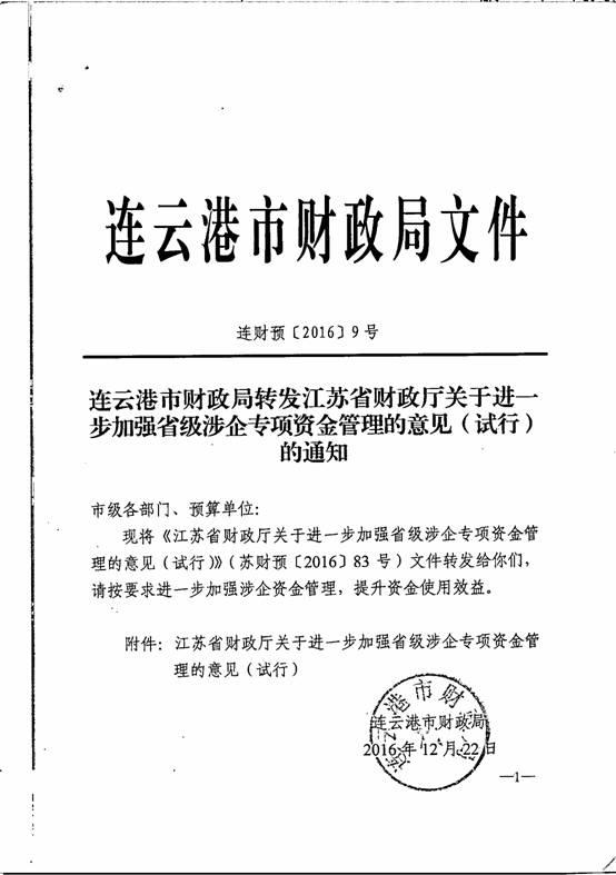连云港市财政局转发江苏省财政厅关于进一步加强省级涉企专项资金的管理的意见(试行)的通知: