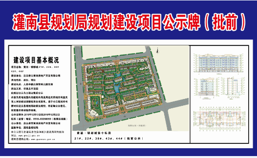 黄浦银都城21#、22#、38#、43#、44#规划建设项目公示牌(批前)(原灌南县规划局发布)