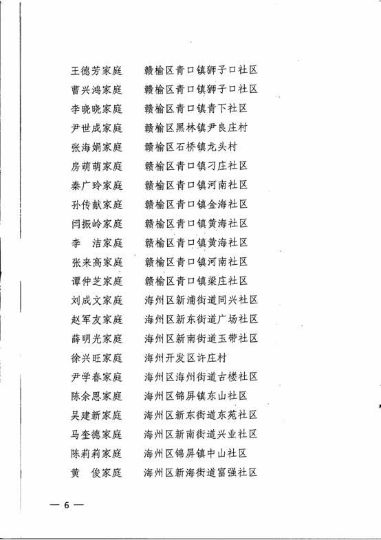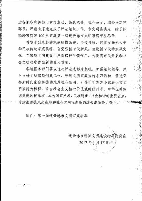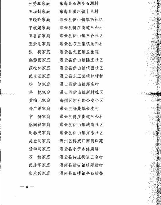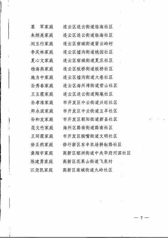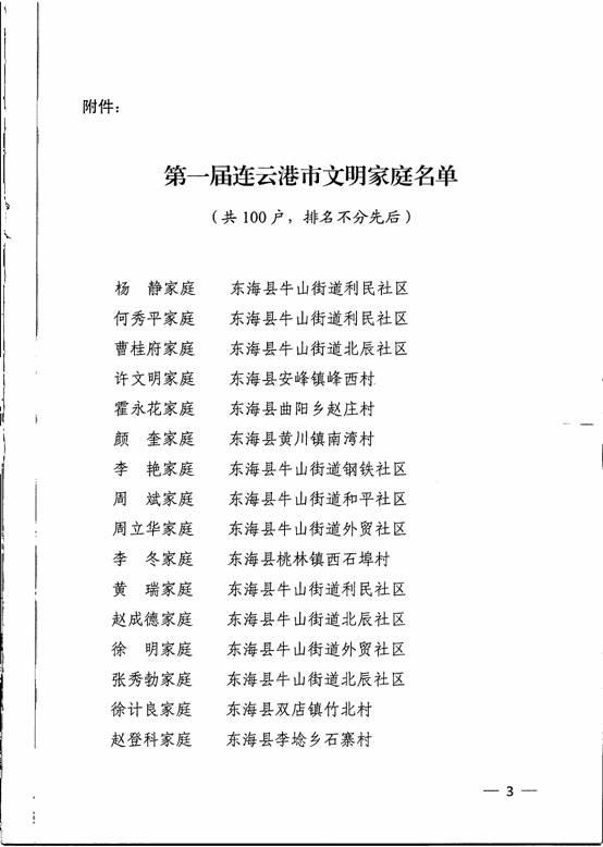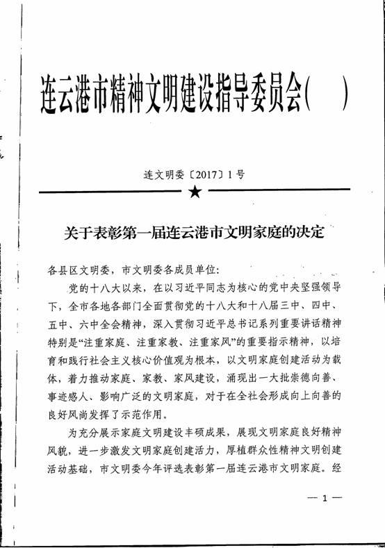 关于表彰第一届连云港市文明家庭的决定: