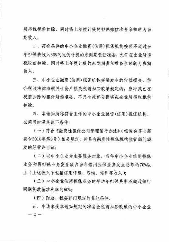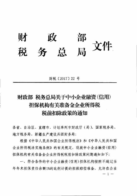 财政部 税务总局关于中小企业融资(信用)担保机构有关准备金企业所得税税前扣除政策的通知