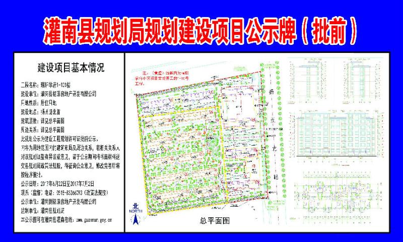 瑞轩学府1-10#楼规划建设项目公示牌(批前)(原灌南县规划局发布)