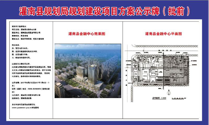灌南县金融中心A座规划建设项目方案公示牌(批前)(原灌南县规划局发布)