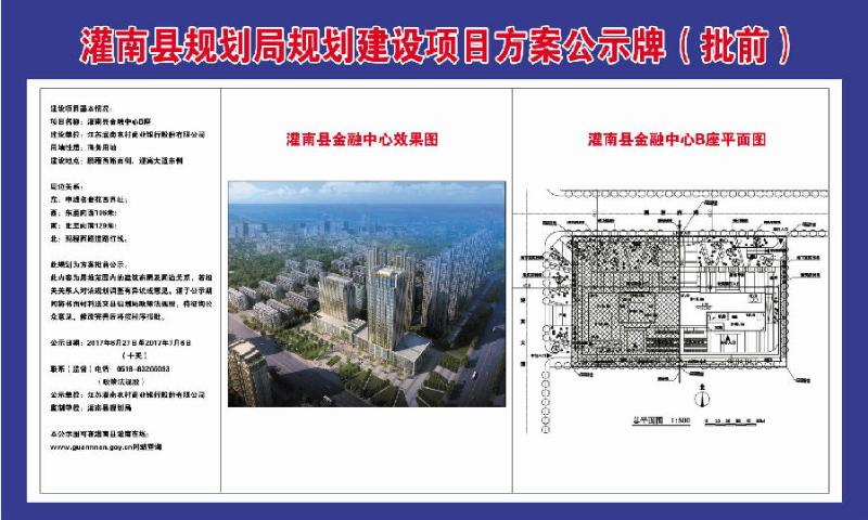 灌南县金融中心B座规划建设项目方案公示牌(批前)(原灌南县规划局发布)