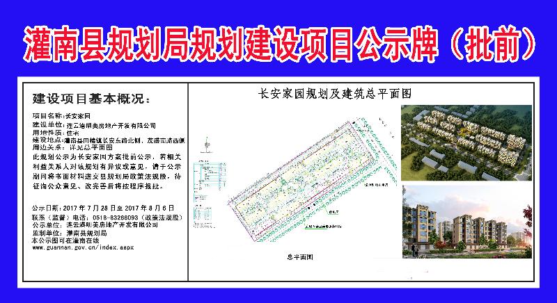 长安家园规划建设项目公示牌(批前)(原灌南县规划局发布)