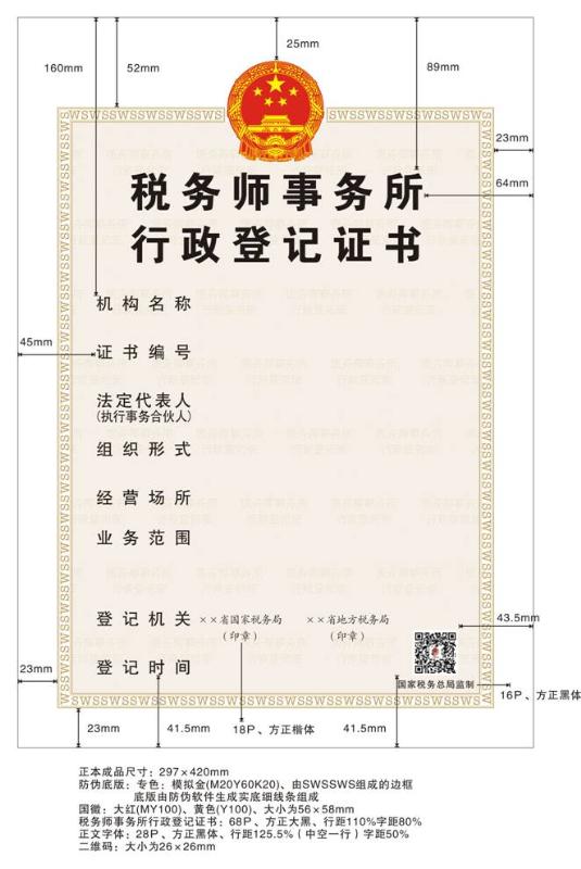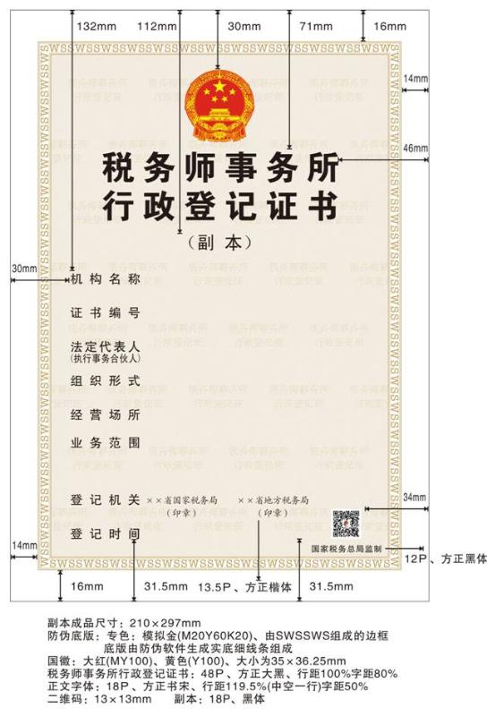 第三条 税务机关按照本规程规定,遵循公开、便捷原则,对符合条件的行政相对人予以行政登记,颁发《税务师事务所行政登记证书》(以下简称《登记证书》,见附件1)。《登记证书》式样由国家税务总局确定。