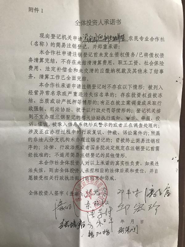 全体投资人承诺书
