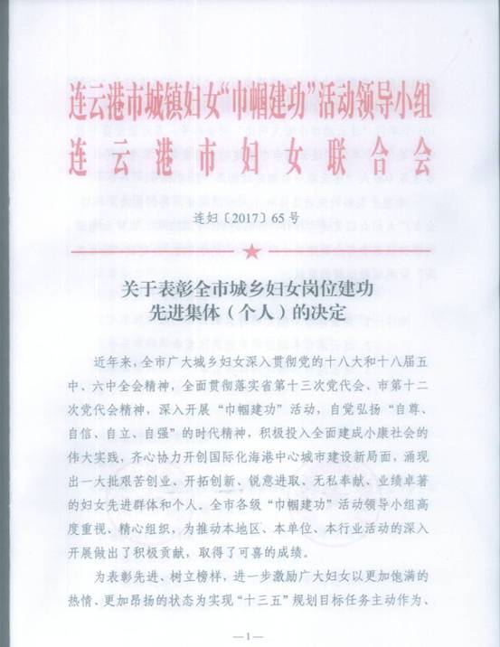 关于表彰全市城乡妇女岗位建功先进集体(个人)的决定