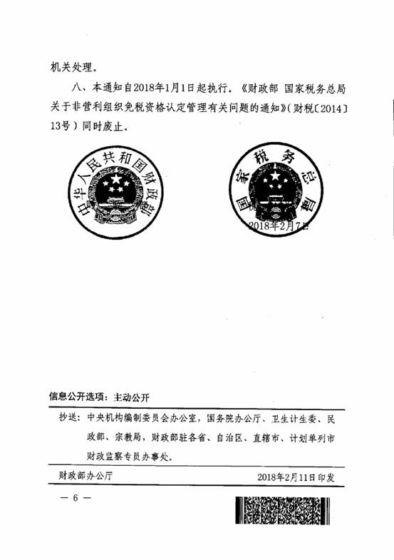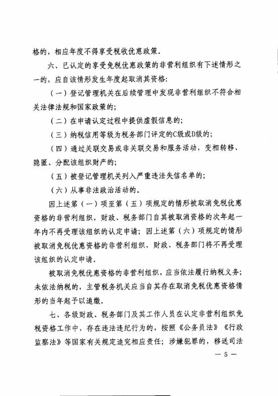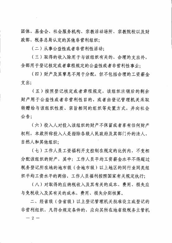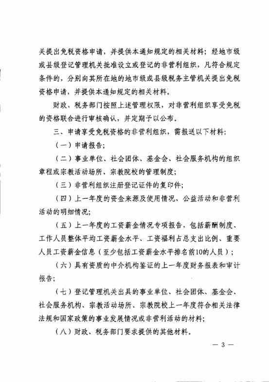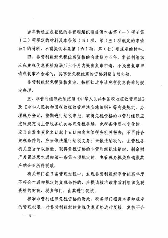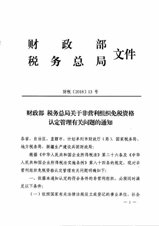 财政部 税务总局关于非营利组织免税资格认定管理有关问题的通知: