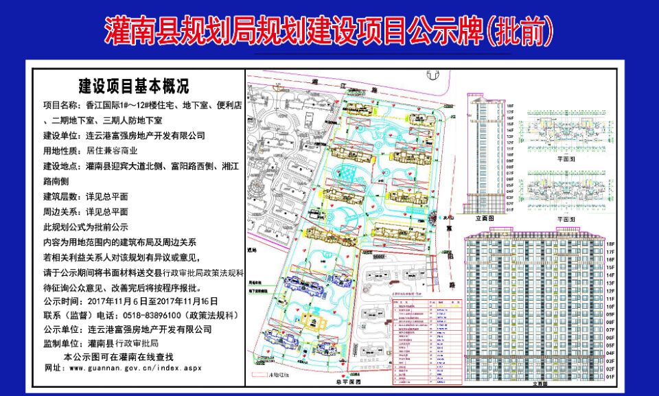 香江国际规划建设项目公示牌(批前)(原灌南县规划局发布)