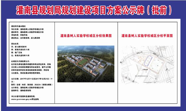 灌南县树人实验学校城区分校规划建设项目方案公示牌(批前)(原灌南县规划局发布)