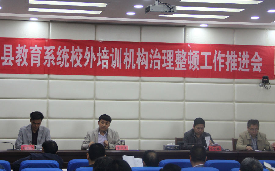 职社办闵向东同志通报了上阶段我县校外培训机构治理工作开展情况。全县小学校长及治理整顿工作领导小组、行动小组全体人员参加会议。