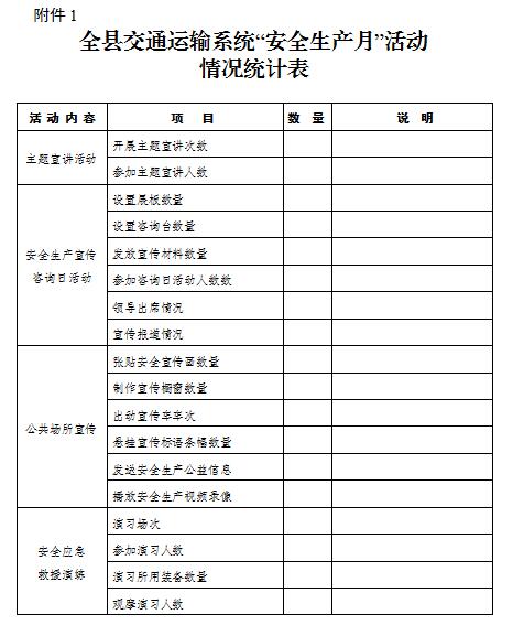 附件:1.全县交通运输系统“安全生产月”活动情况统计表