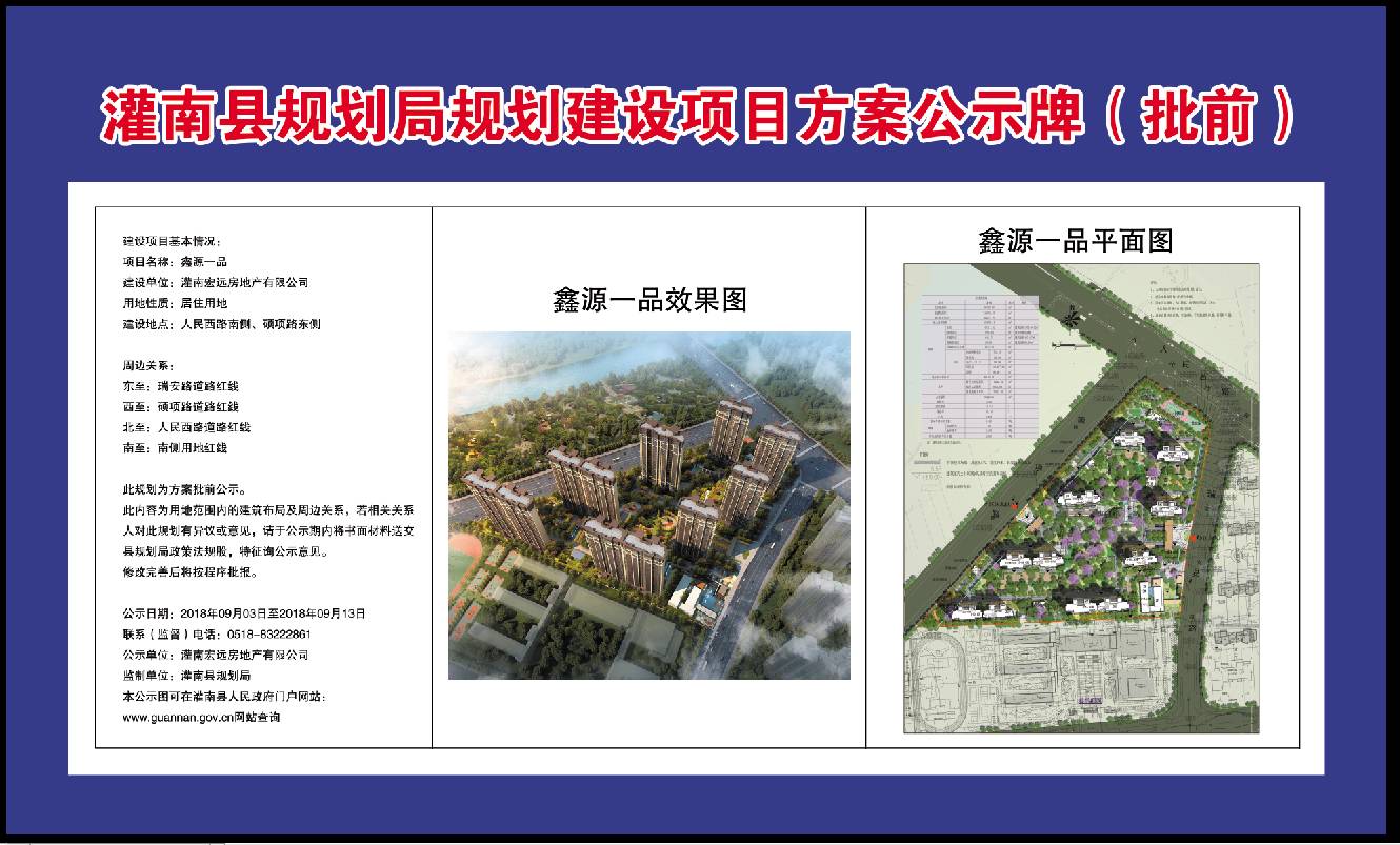 鑫源一品规划建设项目方案公示牌(批前)(原灌南县规划局发布)