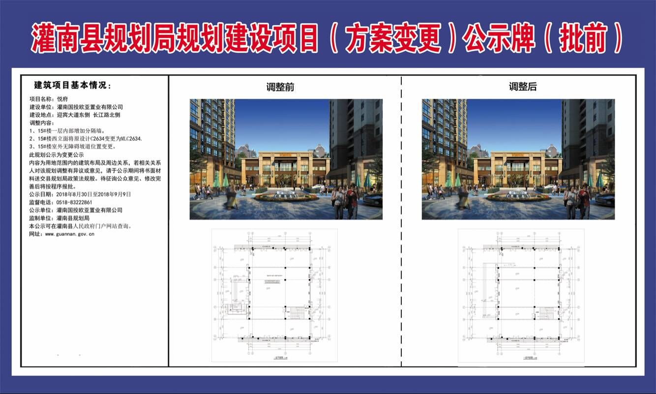 悦府规划建设项目(方案变更)公示牌(批前)(原灌南县规划局发布)