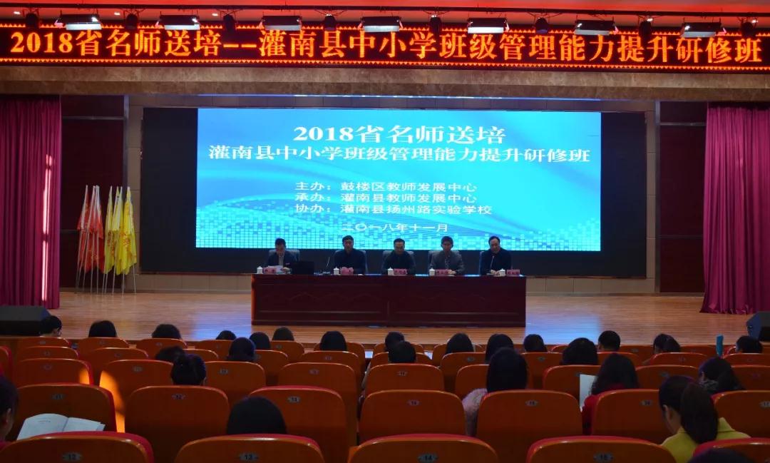 11月23日,2018江苏省名师送培——灌南县中小学班级管理能力提升研修活动在我校举行。本次活动由南京市鼓楼区教师发展中心主办,县教师发展中心承办,扬州路实验学校协办。全县德育工作者、班主任150余人参加活动。