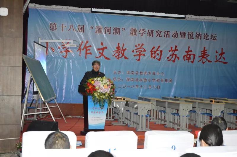 12月8日,第18届“灌河潮”教学研究活动在实验小学雏鹰报告厅拉开帷幕。江苏省特级教师管建刚、吴勇、高子阳、刘恩樵,县教育局副局长成彦明等出席活动,实验小学教育集团(联盟校)全体语文老师,县内部分学校分管教学副校长、教务主任、小学语文骨干教师代表共等500余人参加了本次活动。