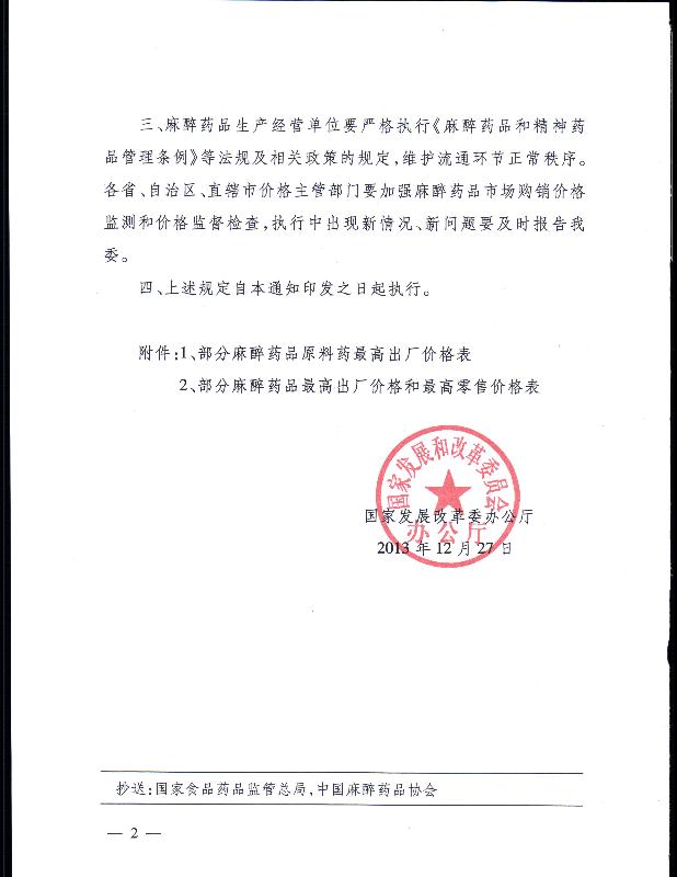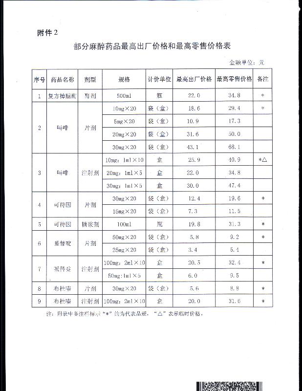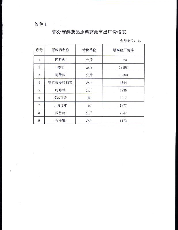 附件:国家发展改革委办公厅关于调整部分麻醉药品价格的通知
