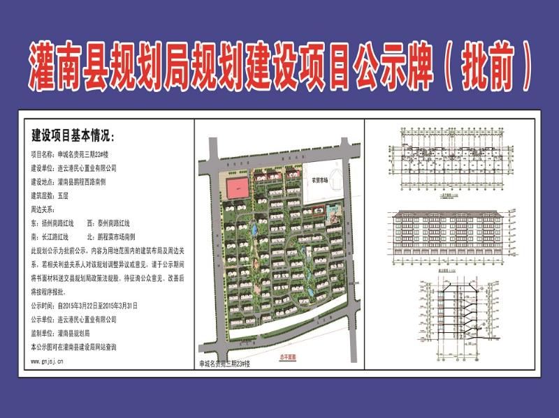 申城名贵苑公示23#楼工程证批前公示(原灌南县规划局发布)