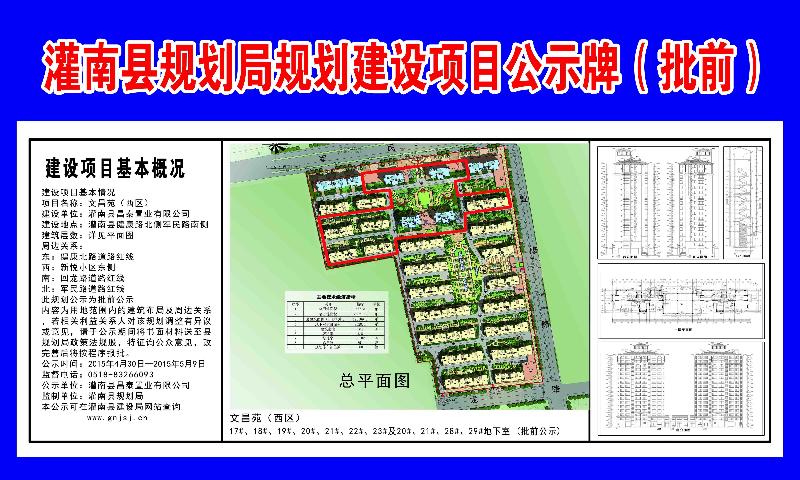 文昌苑(西区)17-23#及20-21#、28-29#地下室工程证批前公示(原灌南县规划局发布)
