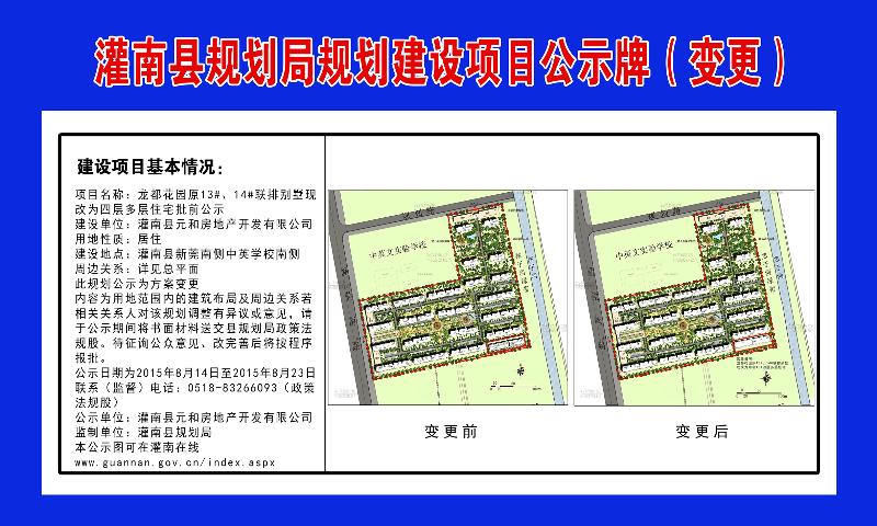 龙都花园13#14#方案调整公示(原灌南县规划局发布)