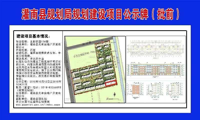 龙都花园13# 建设工程规划许可证批前公示(原灌南县规划局发布)