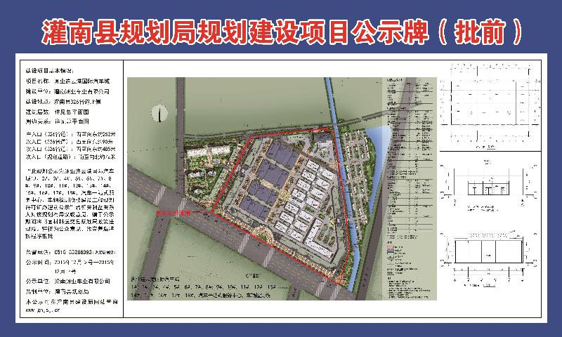 洲业连云港国际汽车城1-18#、汽车一站式服务中心、车辆检测线工程证批前公示(原灌南县规划局发布)