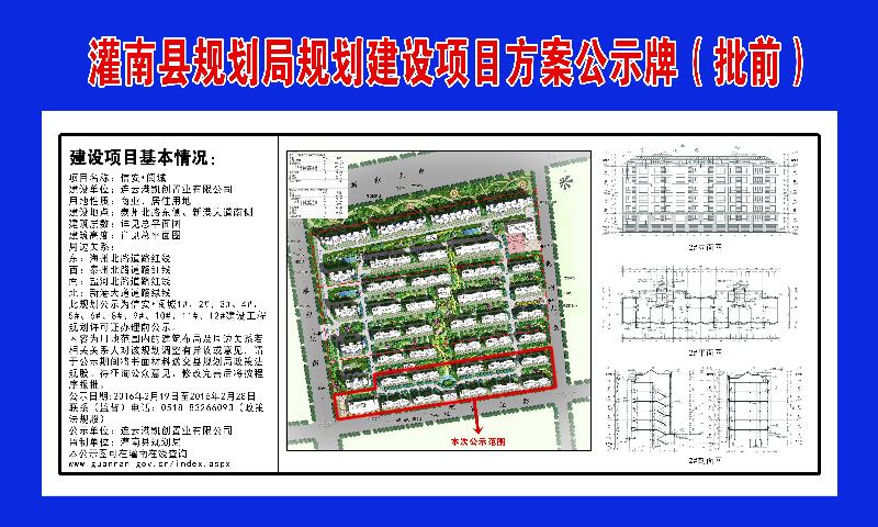 信安阅城1-6#、8-12#工程证批前公示(原灌南县规划局发布)