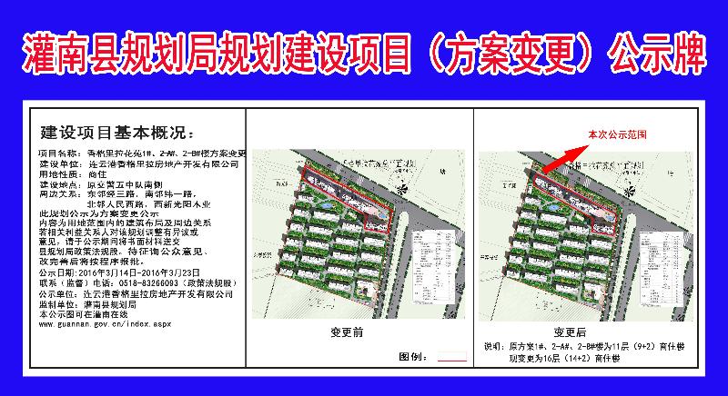 香格里拉1#、2-A#、5-B#方案变更公示(原灌南县规划局发布)