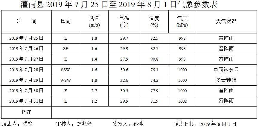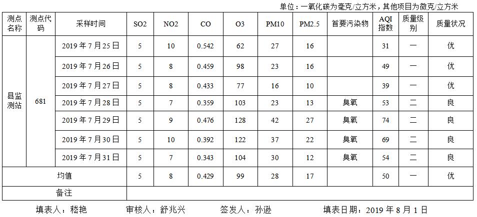 灌南县空气质量2019年第31期周报表