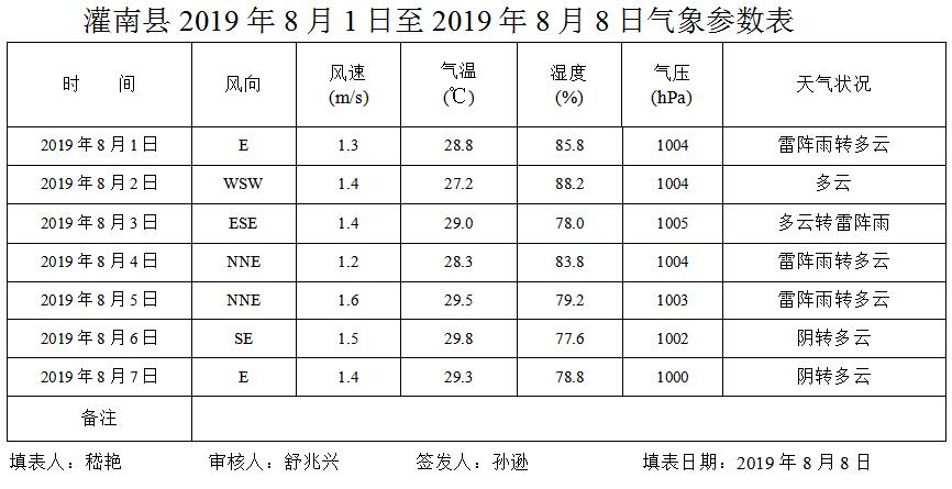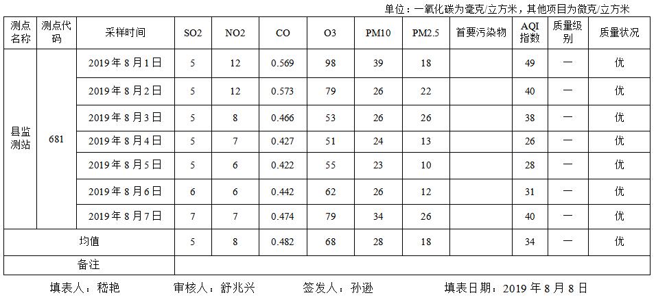灌南县空气质量2019年第32期周报表