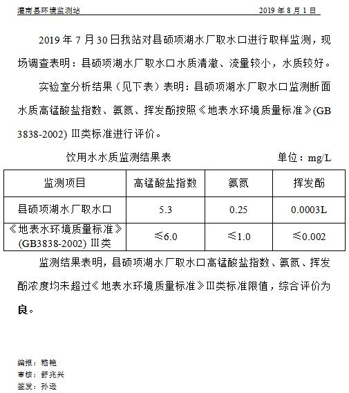 饮用水源水质周报 [2019]第31期
