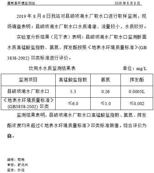 饮用水源水质周报 [2019]第32期