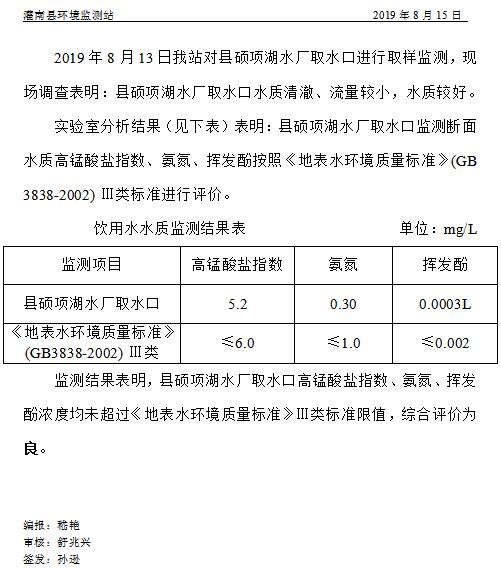 饮用水源水质周报 [2019]第33期