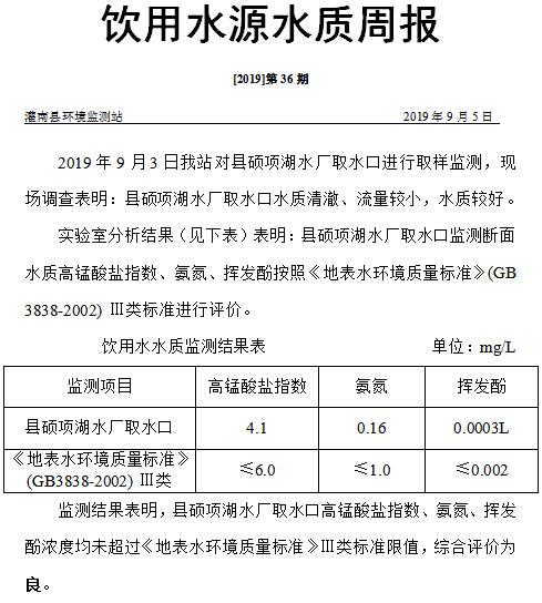 饮用水源水质周报 [2019]第36期