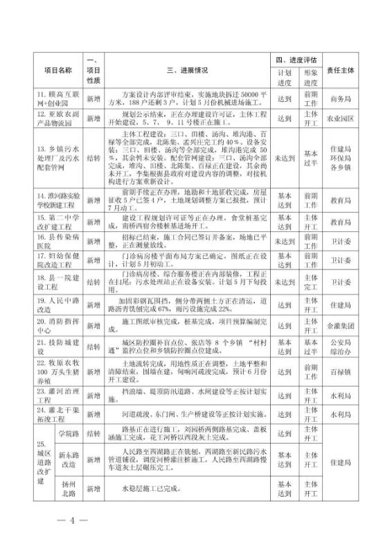 为加快重点工作推进,近期县督查办会同县双创办,对全县2017年县领导第一、二、三批挂钩重点工程项目进展情况进行了跟踪督查,现将1-4月份有关情况通报如下。