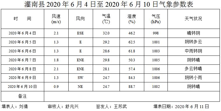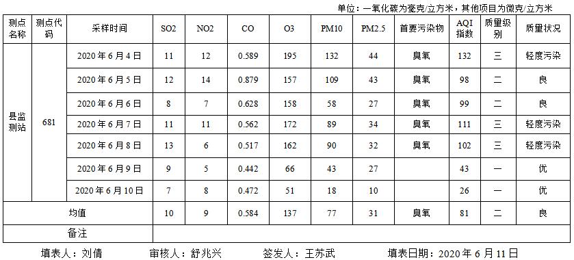 灌南县空气质量2020年第24期周报表