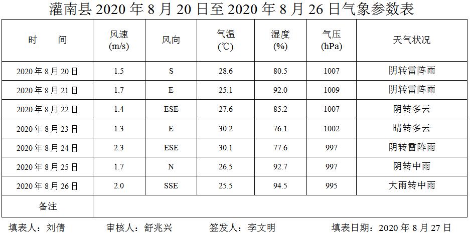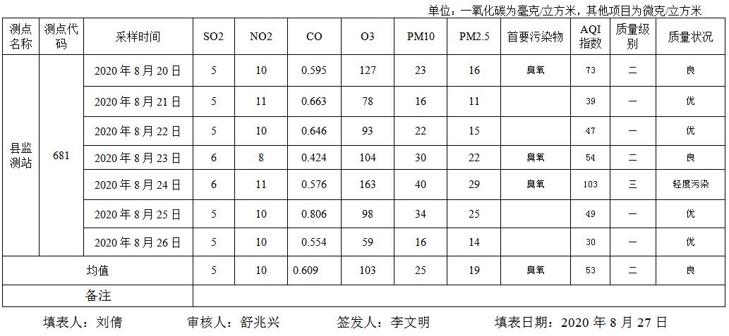 灌南县空气质量2020年第35期周报表