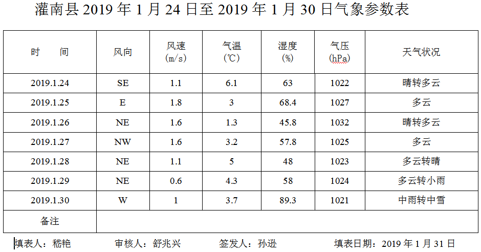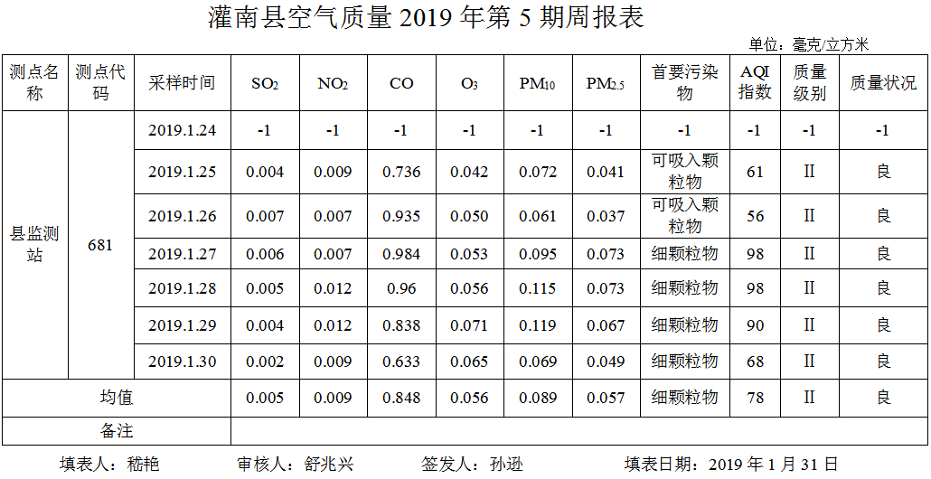 灌南县空气质量第5期(2019)周报表
