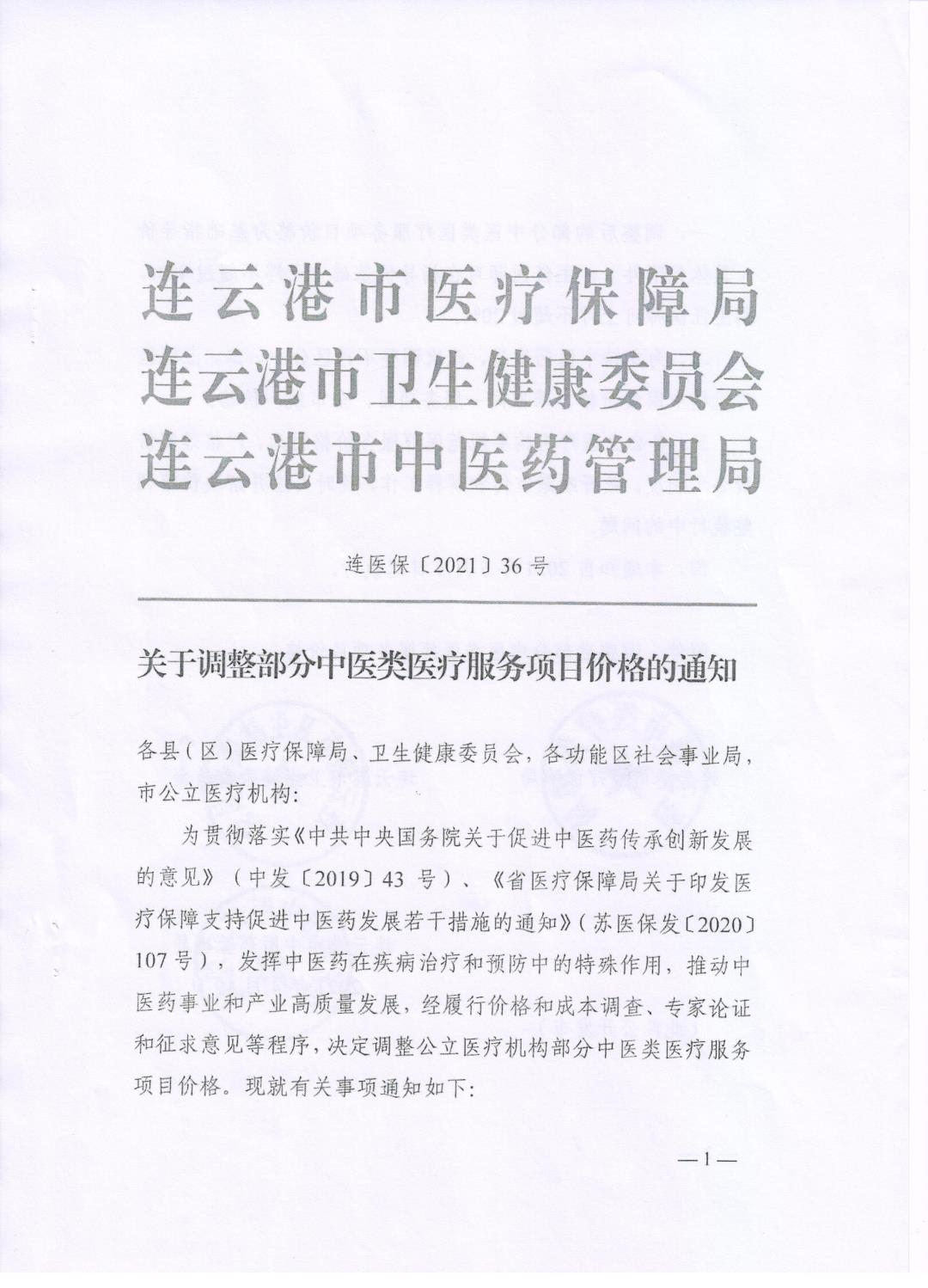 转发市医疗保障局 市卫生健康委员会 市中医药管理局关于调整部分中医类医疗服务项目价格的通知