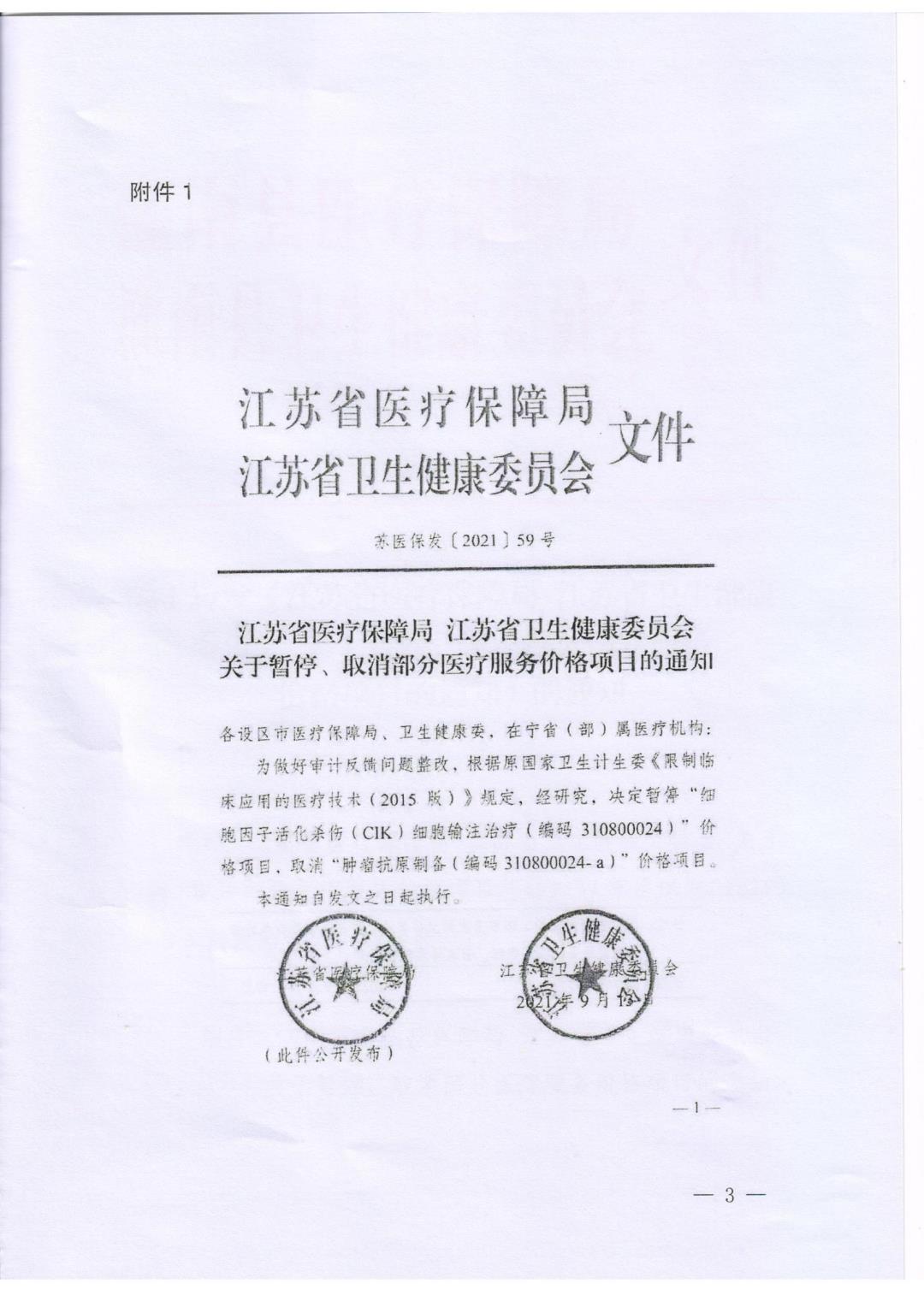 关于转发《江苏省医疗保障局 江苏省卫生健康委员会 关于暂停、取消部分医疗服务 价格项目的通知》的通知