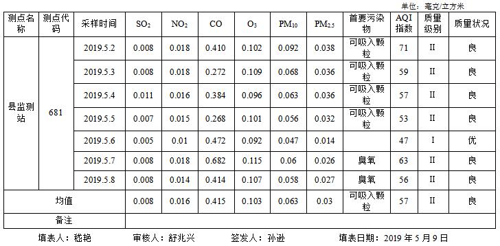 灌南县空气质量2019年第19期周报表