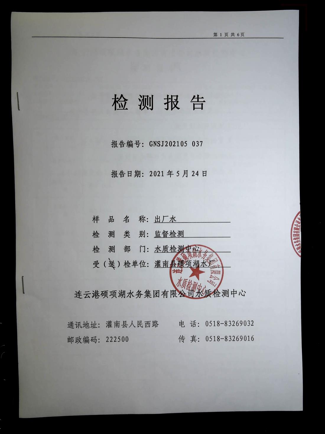 2021年5月硕项湖出厂水监督检测报表