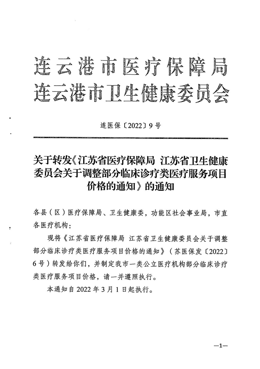 转发市医疗保障局 市卫生健康委员会关于转发<<省医疗保障局 省卫生健康委员会关于调整部分临床诊疗类医疗服务项目价格的通知>>的通知