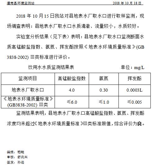 饮用水源水质周报 [2018]第42期