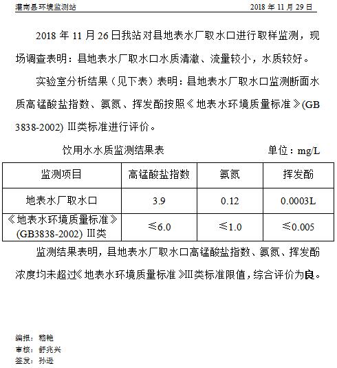 饮用水源水质周报 [2018]第48期